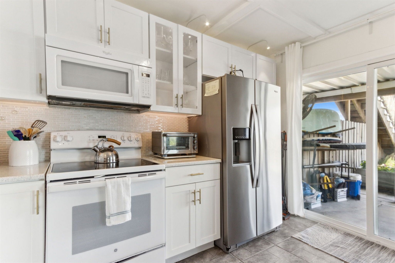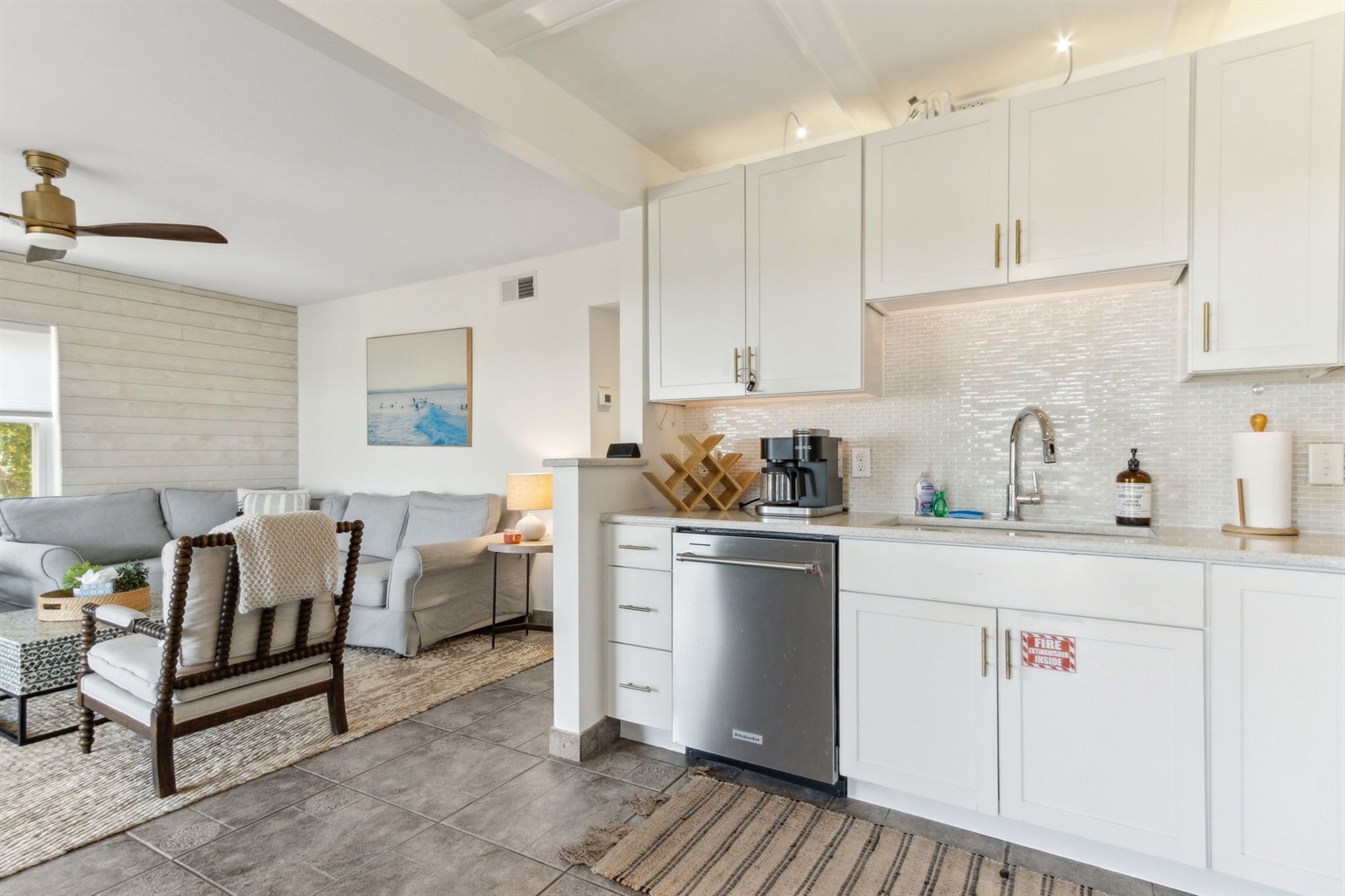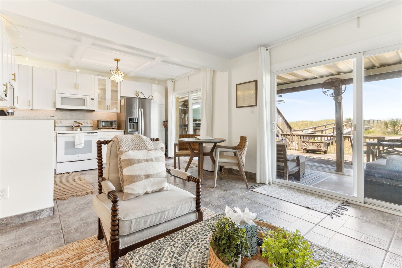 2 Bedrooms • 1 Bathroom 1 Bath • Sleeps 2-4Our first-floor unit, part of Seagate Condos (a small four-unit building that enjoys one of the closest to the ocean lots on Amelia Island!), features 2 bedrooms and 1 bath with extremely comfortable furnishings. The Master boasts Bali inspired decor, equipped with a king size bed and luxury linens/pillows so you can rest the night away. The guest room- a cozy queen with a true, beach cottage feel. Relax in the evenings in the fully upgraded bathroom which features a Jacuzzi tub, marble tile and quartz countertop sink. Enjoy the open concept living room and kitchen showcasing white quartz countertops, new appliances, and white cabinets with lots of light filtering in through the two large glass sliding doors. Relax on our comfy, Pottery Barn sectional backdropped by a beachy shiplap wall and enjoy one of your favorite Netflix films to close out a relaxing day on the beach.