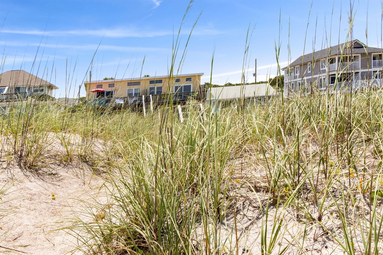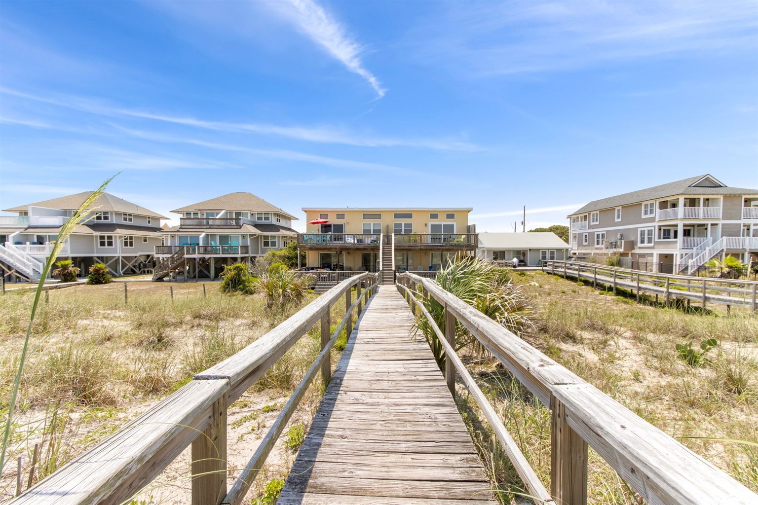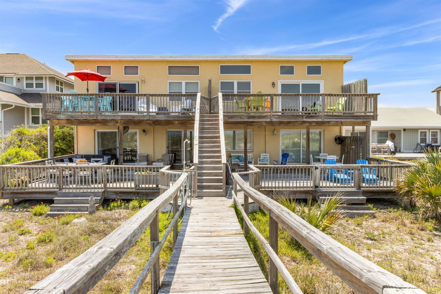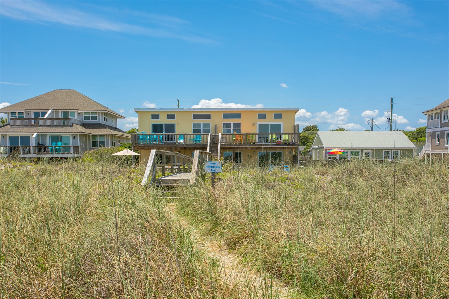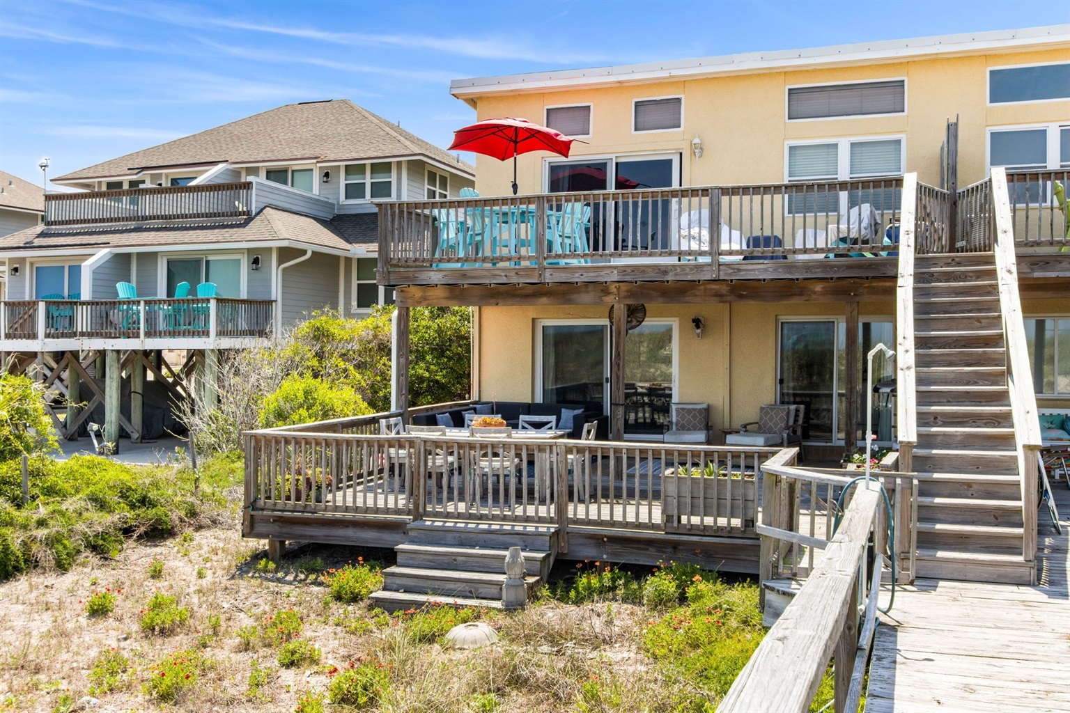 This beach condo is truly one of a kind. Unlike most condos, there are no stairs or elevators along your route to get to the beach. Just walk out the back door, and you're there! Another favorite feature of ours is the large deck out back. Where most people have a balcony with a couple of chairs, our beachfront deck is large enough to house an outdoor sectional, two large lounge chairs with an ottoman, a teak table that seats six, a hammock, and 3 raised garden beds. You won't want to spend any time inside!!