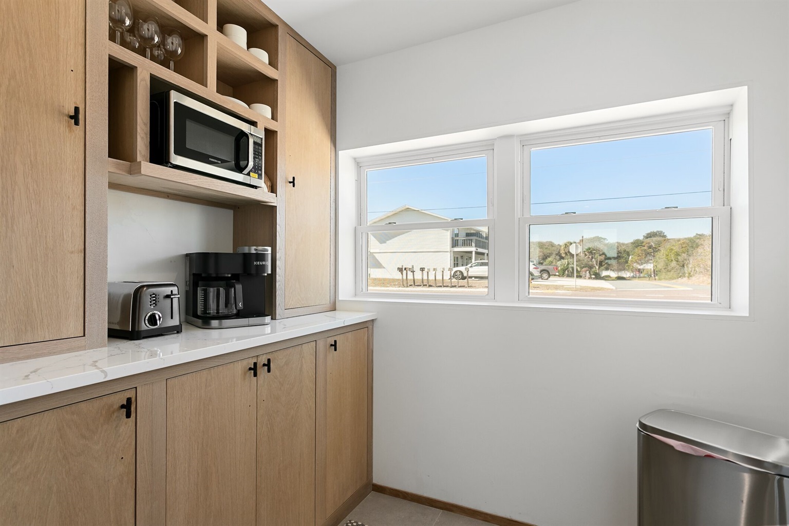 This is a beautiful oceanfront single story home complete with brand new everything including : custom cabinets / vanities and pantry with coffee bar, Top of the line KitchenAid appliances, 75" TV, restoration hardware sofas, marble bathrooms, high quality furniture, linens, mattresses & pillows- all with a modern coastal decor.